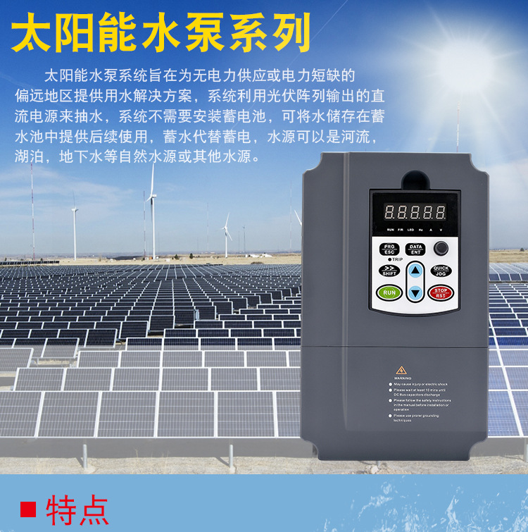 SKI650變頻器能夠廣泛的應(yīng)在陽光充足、市電短缺的地區(qū),可以有效解決農(nóng)場灌溉、畜牧養(yǎng)殖、生產(chǎn)生活的用水問題。