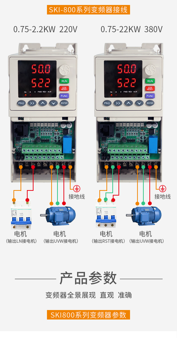 ⊙提供多種故障保護(hù)功能:過流、過壓、欠壓、過溫、缺相、過載等保護(hù)功能
