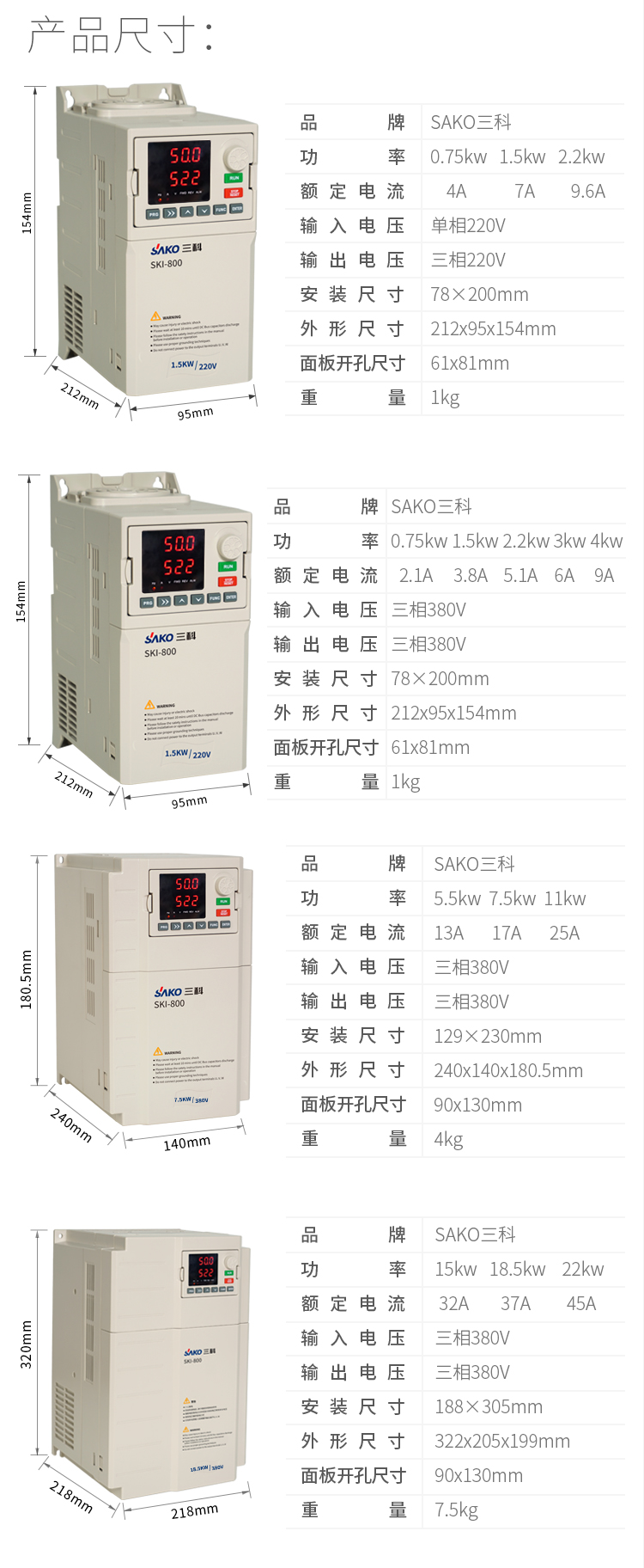 | 產(chǎn)品型號(hào) | SKI800A5D5G-4 | SKI800A7D5G-4 | SKI800A11D0G-4 |