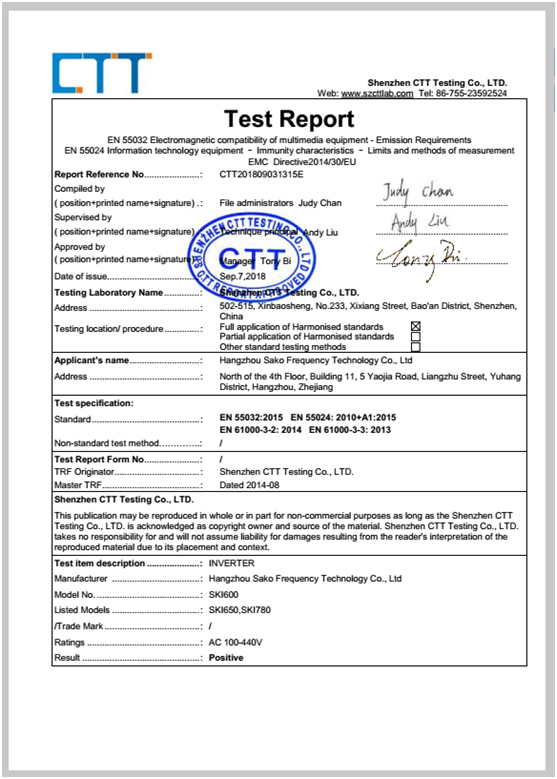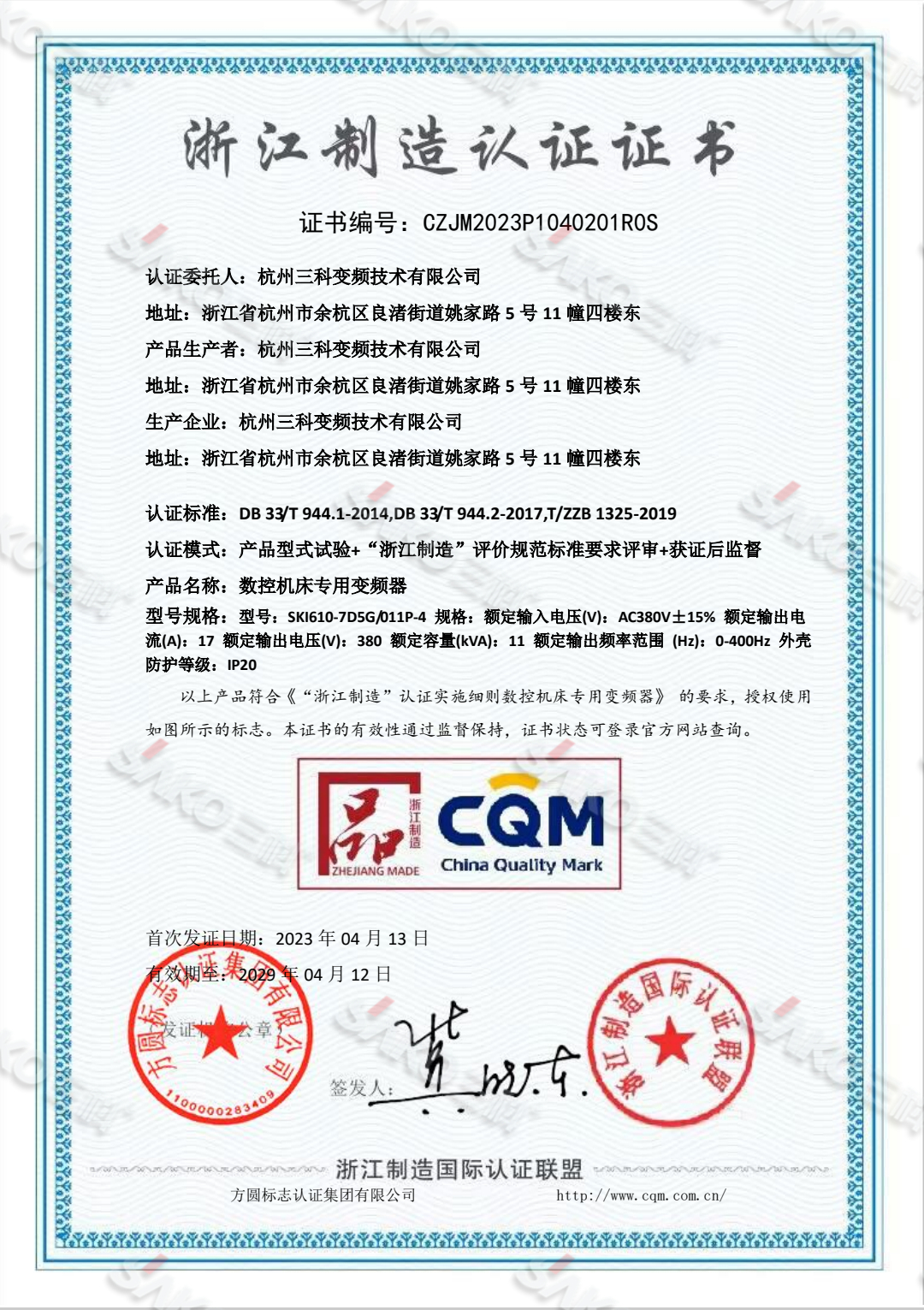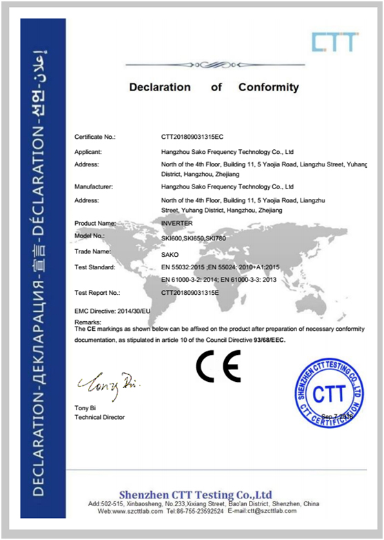 杭州三科變頻技術(shù)有限公司通過國際CE認證