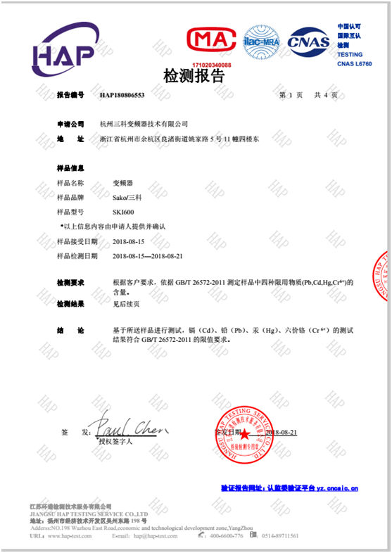 杭州三科變頻技術(shù)有限公司通過CNAS認證
