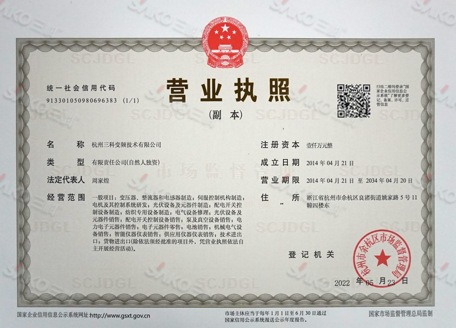杭州三科變頻技術(shù)有限公司營業(yè)執(zhí)照