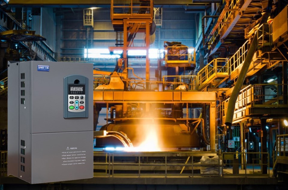 鋼鐵工業(yè)環(huán)境溫度高,粉塵重。為了降低故障概率,在選擇變頻器容量時(shí),應(yīng)適當(dāng)放大。另外,鋼鐵冶金行業(yè)的電機(jī)負(fù)載大多較重,需要變頻設(shè)備有一定的起動(dòng)轉(zhuǎn)矩和低速轉(zhuǎn)矩。因此通常會(huì)選擇矢量控制變頻器。