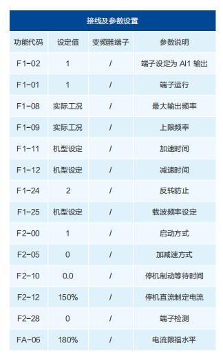 在大圓機運轉(zhuǎn)中,絕對不能讓電機反轉(zhuǎn)以及回轉(zhuǎn)現(xiàn)象,否則針床的針將被折彎甚至斷針。有些大圓機接入單向軸承,可不予考慮。要是系統(tǒng)正反轉(zhuǎn)完全取決于電機的正反轉(zhuǎn)控制,則需要設(shè)置合理的參數(shù),一方面要設(shè)置禁止反轉(zhuǎn)功能,另外一方面需要直流制動功能。還要注意不能出現(xiàn)失速現(xiàn)象,以免造成斷針等損失。本方案采用模擬量輸入給定頻率。線路簡單(省略)大圓機要求起動時響應(yīng)要快,低頻大轉(zhuǎn)矩輸出;停機時要光滑、柔和一些,以保護針床。因此合理設(shè)置上表參數(shù)是充分發(fā)揮圓機性能的保證,原則是通過調(diào)節(jié)F1-13參數(shù)得到最佳的低頻轉(zhuǎn)矩輸出能力以及降低圓機高速運行的振動,通過調(diào)起??刂?F2組)以及加減速度時間參數(shù)(F1組)得到頻率調(diào)節(jié)的光滑性。