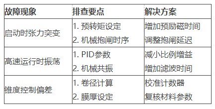 建議每6個(gè)月進(jìn)行一次系統(tǒng)校準(zhǔn),包括張力傳感器標(biāo)定、卷徑計(jì)算驗(yàn)證等維護(hù)項(xiàng)目。對(duì)于特殊材料(如超薄膜、彈性基材等),需重新優(yōu)化錐度系數(shù)和PID參數(shù)。