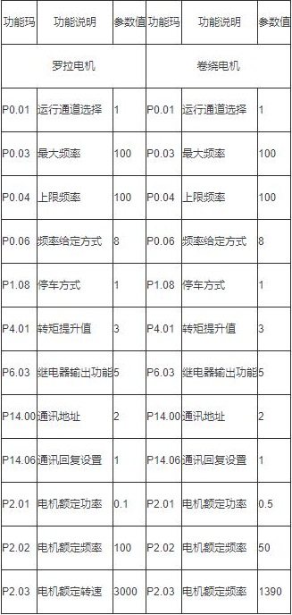 本文僅以杭州三科生產(chǎn)的SKI600通用重載變頻器(VFD)在某地企業(yè)中的化纖分絲機(jī)的現(xiàn)場調(diào)試項(xiàng)目內(nèi)容為主體,為大家闡述變頻技術(shù)在化纖分絲機(jī)中的應(yīng)用方案,如上所示??蛻粝Mㄟ^使用兩臺(tái)SKI600(0.75KW),一臺(tái)控制超喂羅拉電機(jī),一臺(tái)控制收卷電機(jī),另外每5臺(tái)設(shè)備需要一個(gè)SKI600(0.75)控制頂輪電機(jī),步進(jìn)控制器控制移絲成型,每圈單脈沖霍爾元件用來測速,要求主要包括: