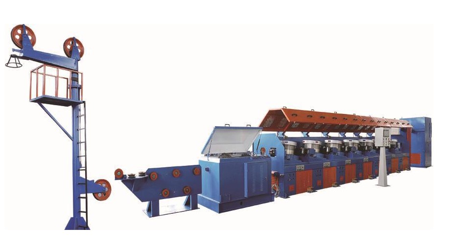 作為常見(jiàn)的金屬線材加工設(shè)備,直進(jìn)式拉絲機(jī)能夠?qū)Ω摺⒅?、低碳鋼絲、不銹鋼絲、銅絲、合金銅絲、鋁合金絲等,進(jìn)行伸線加工,誤差0.1%精確計(jì)米。伸線機(jī)指的是一種可連續(xù)拉制,機(jī)械、電氣速度均衡匹配的設(shè)備,可對(duì)高、中、低碳鋼絲、不銹鋼絲、銅絲、合金銅絲、鋁合金絲等,進(jìn)行伸線加工,誤差 0.1%精確計(jì)米。設(shè)備主要用于將0.50-1.00mm銅線拉制成0.08-0.25mm銅線。如今已廣泛應(yīng)用在該設(shè)備中作為收放卷、牽引電機(jī)等驅(qū)動(dòng)主要部件,本案采用杭州三科的SKI600系列直進(jìn)式拉絲機(jī)變頻器控制收放卷電機(jī)。