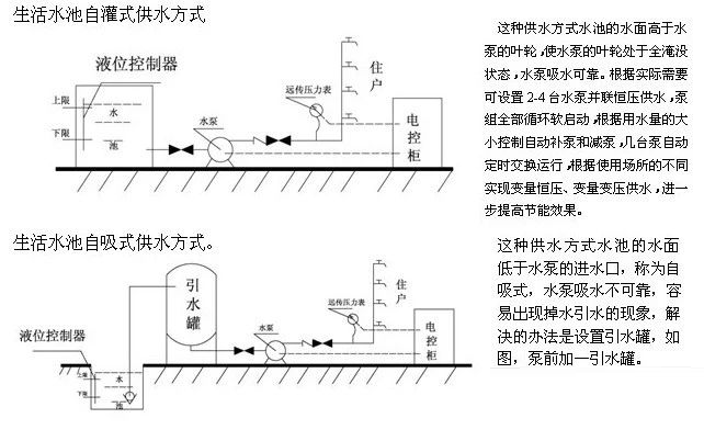 2、附加小泵或氣壓罐,為完全消除小流量或零流量供水電耗,可增加輔助小泵或輔助氣壓罐,當(dāng)供水壓力低時(shí),自動停運(yùn)主泵,使小泵或氣壓罐運(yùn)行。