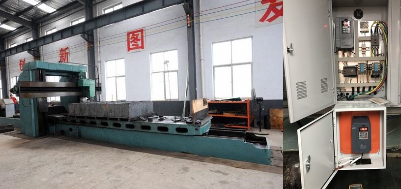 針對龍門刨床主傳動系統(tǒng)的結(jié)構(gòu)及控制特點(diǎn),采用PLC和變頻技術(shù)對傳統(tǒng)的龍門刨床控制系統(tǒng)進(jìn)行改造。工作臺的主運(yùn)動及進(jìn)刀機(jī)構(gòu)分別采用變頻器進(jìn)行控制,制動系統(tǒng)采用能量回饋裝置,全部工藝過程及相關(guān)信號由PLC進(jìn)行控制,與原系統(tǒng)相比較,改造后使用我司ES100系列變頻器調(diào)速系統(tǒng)主傳動裝置容量節(jié)省,傳動效率提高了一倍,調(diào)速范圍增大到1:35,靜差度3%,同時還大大簡化了拖動控制系統(tǒng),減小了維護(hù)工作量,經(jīng)濟(jì)性和可靠性都有了很大的提高。