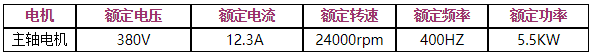 (4)調(diào)速范圍在0~24000r/min,換算變頻器的運行頻率為0~400Hz(二級高速電機);